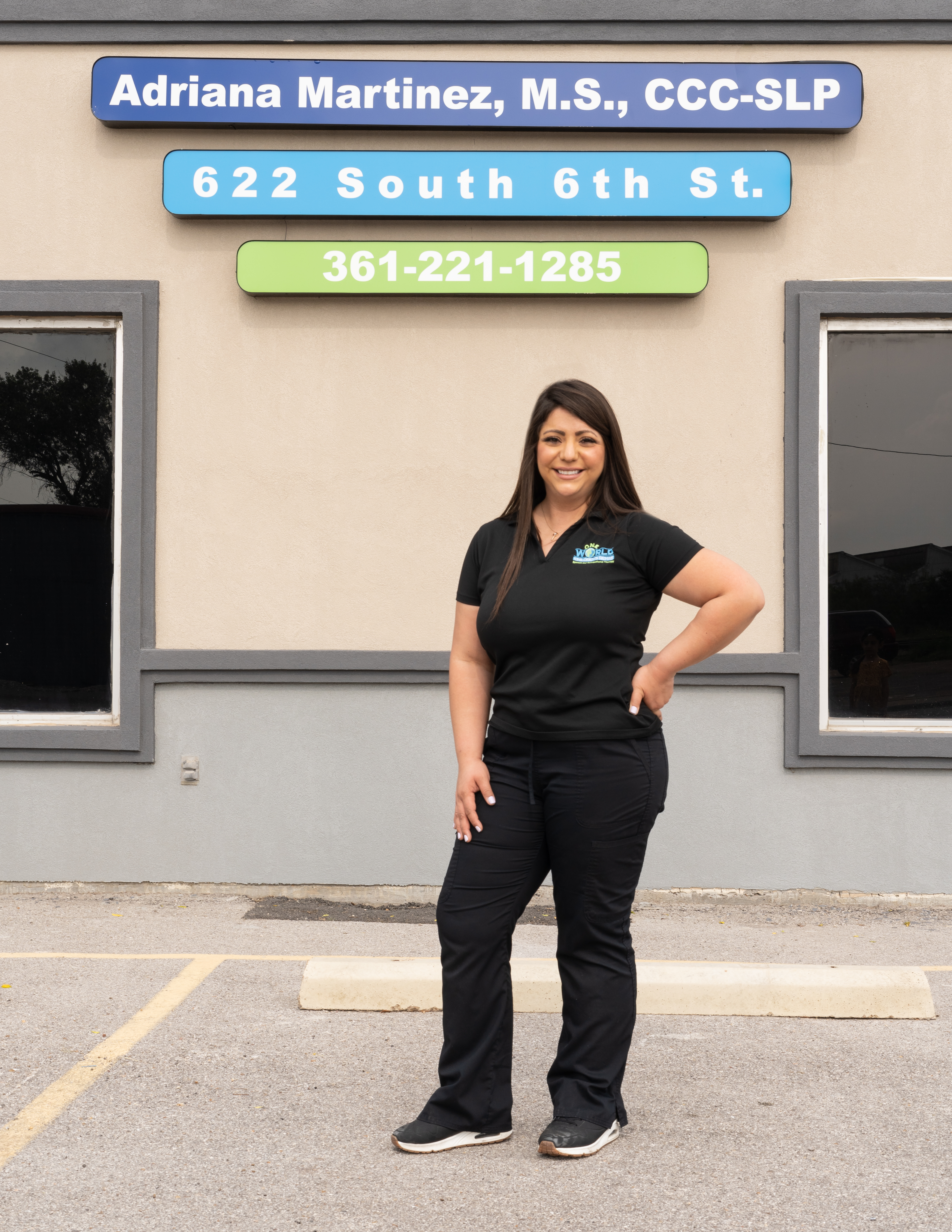 Adriana Martinez, owner and Speech Language Pathologist obtained her undergraduate degree in Communication Sciences and Disorders at the University of Texas Pan American in 2009 and obtained her graduate degree from Texas A&M University-Kingsville in 2011. While in graduate school, Adriana fell in love with Kingsville’s small-town charm. During that time..., Adriana met a Kingsville native and Kingsville Police Officer, Ernie Martinez. After graduate school. Adriana moved back to her hometown and worked as a Pediatric Speech-Language Pathologist for several years, both at outpatient rehab facilities and home health agencies. In 2016, Adriana made the leap and moved to Kingsville with her husband Ernie and her 4-month-old daughter. For six years, Adriana worked at an outpatient rehab in Alice, Texas where she enjoyed providing therapy services to children in the area and witnessing their progress throughout her tenure.